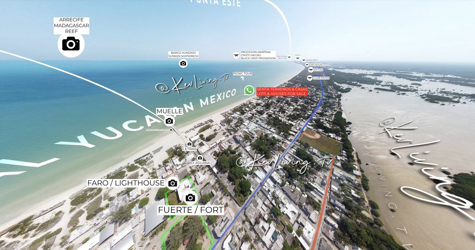 Este recorrido 360 es interactivo: puedes girar la vista en todas direcciones, acercar, alejar y moverte por diferentes panoramas. En celular se controla con el dedo y en computadora con el mouse, siempre a tu ritmo. La idea es simple: ver Sisal desde el aire y luego “bajar” por escenas para entender referencias, distancias y puntos clave del entorno.